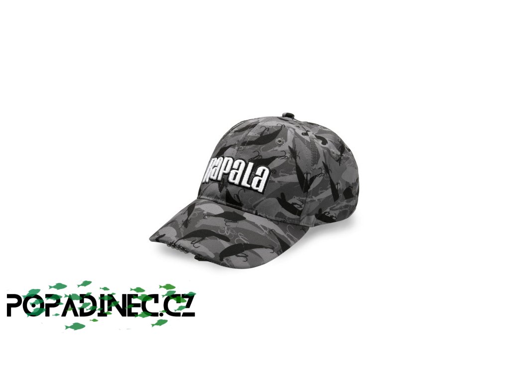 NOVINKA• Praktická kšiltovka se svítilnou ;• Nový šedý maskovací vzor s motivem umělé nástrahy ;• 5 LED diod vestavěných do štítku čepice ;• Univerzální velikost ;