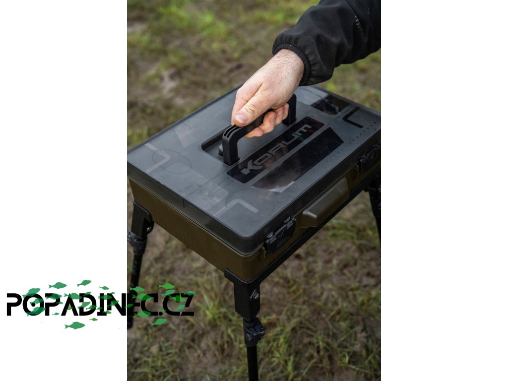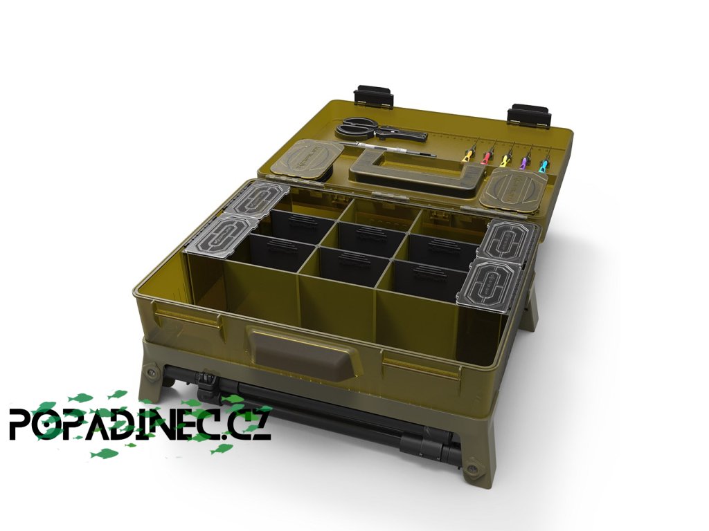 Součástí jsou teleskopické nohy, které umožňují mít box v dosažitelné vzdálenosti při rybolovu ze židle, nebo ho držet dokonale organizovaný při rybolovu ze shelteru. Box má odolnou rukojeť pro přenášení, boční úchyt, pevné zajišťovací spony a těsnění, a součástí je i metr pro měření délky při vázání návazců.