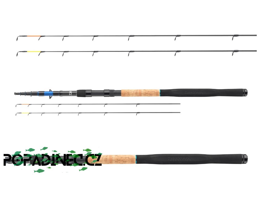 Tenké, vysoce kvalitní blanky z uhlíkových vláken HMC zaujmou velmi nízkou hmotností, vynikající vyvážeností a výjimečně dobrou akcí. I přes několik sekcí reagují pruty extrémně rychle a nabízejí dostatek síly v páteři, aby si poradily i s těmi největšími cílovými rybami. Omotaná očka, šroubovací DPS sedlo navijáku a ergonomicky tvarovaná rukojeť z korku a EVA pěny poskytují vysoce kvalitní vzhled. Řada feederových prutů nzon tele nabízí modely pro téměř všechny běžné oblasti feederového rybolovu - progresivní prut s vrhací zátěží 60 g je speciálně navržen pro method feederový rybolov. Daiwa nabízí pruty s vrhacími zátěžemi do 90 g nebo 120 g pro lehký až střední feederový rybolov na kratší vzdálenost a model s dlouhým náhozem pro rybníky, jezera a kanály. Pro těžký rybolov v silných proudech nebo s velkými těžkými klecemi je prut s vrhací zátěží 150 g a nadrozměrnými očky na špičkách toulce správnou volbou. Pruty Nzon tele feeder jsou dodávány se dvěmi špičkami.