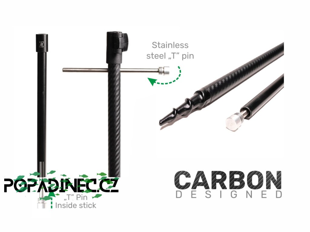 Nová, kvalitně zpracovaná, pevná, teleskopická, zavrtávací vidlička, je díky své “vychytávce” jediná na trhu ! Ona vychytávka spočívá v tom, že ve spodní části vnitřního dílu vidličky je zašroubován nerezový “kolík”, který po vyšroubování slouží, jako pomůcka pro snazší zavrtání do tvrdého podkladu. Kolík jednoduše odšroubujete, prostrčíte skrz díry ve vidličce a získáte tak “ T” profil, se kterým bude zavrtání mnohem snazší ! Tato verze je navíc zhotovena ve velice slušivém “CARBON” designu, do kterého jsme oblékli také hrazdy, takže máte možnost u vody udělat velkou parádu a trochu vyniknout.