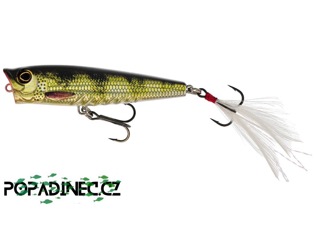 Po dopadu na hladinu vytváří výrazný „pop“ efekt a silné zvukové i vizuální signály, které imitují zraněnou rybku. Tyto podněty okamžitě přitahují pozornost dravců jako štika, boleň nebo okoun – zejména v mělkých nebo zarostlých vodách, kde se zdržují před útokem.